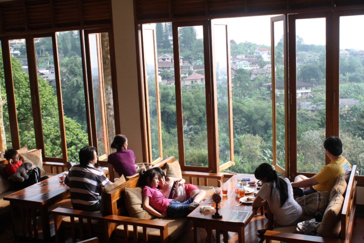 - Fasilitas: Interior perpaduan antara Jawa dan Bali, pemandangan Gunung Salak yang mempesona, cocok Kepada nongkrong romantis.
