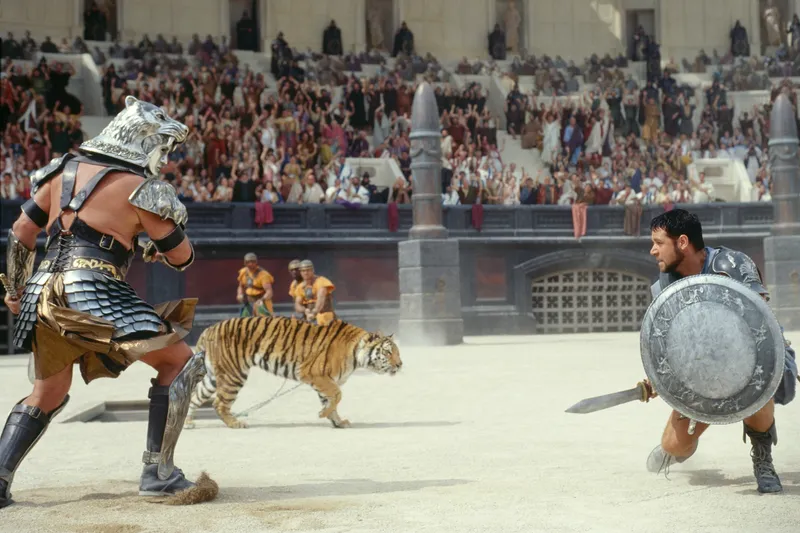 Sinopsis: Maximus (Russell Crowe), seorang jenderal Romawi yang dikhianati, menjadi gladiator Kepada membalas dendam terhadap Kaisar Commodus. Sinema ini menyuguhkan aksi perang dan duel epik di arena Colosseum.