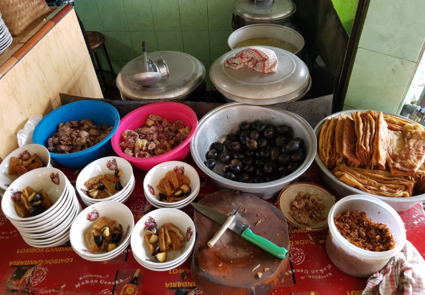 Rekomendasi tempat makan di solo selanjutnya adalah Warung Mengerti kupat “Sido Mampir” ini memang paling terkenal dengan sajiannya. Engkau Bisa menjumpai potongan Mengerti goreng, bakwan, mi kuning, kol, dan kacang yang disiram dengan kuah kecap.