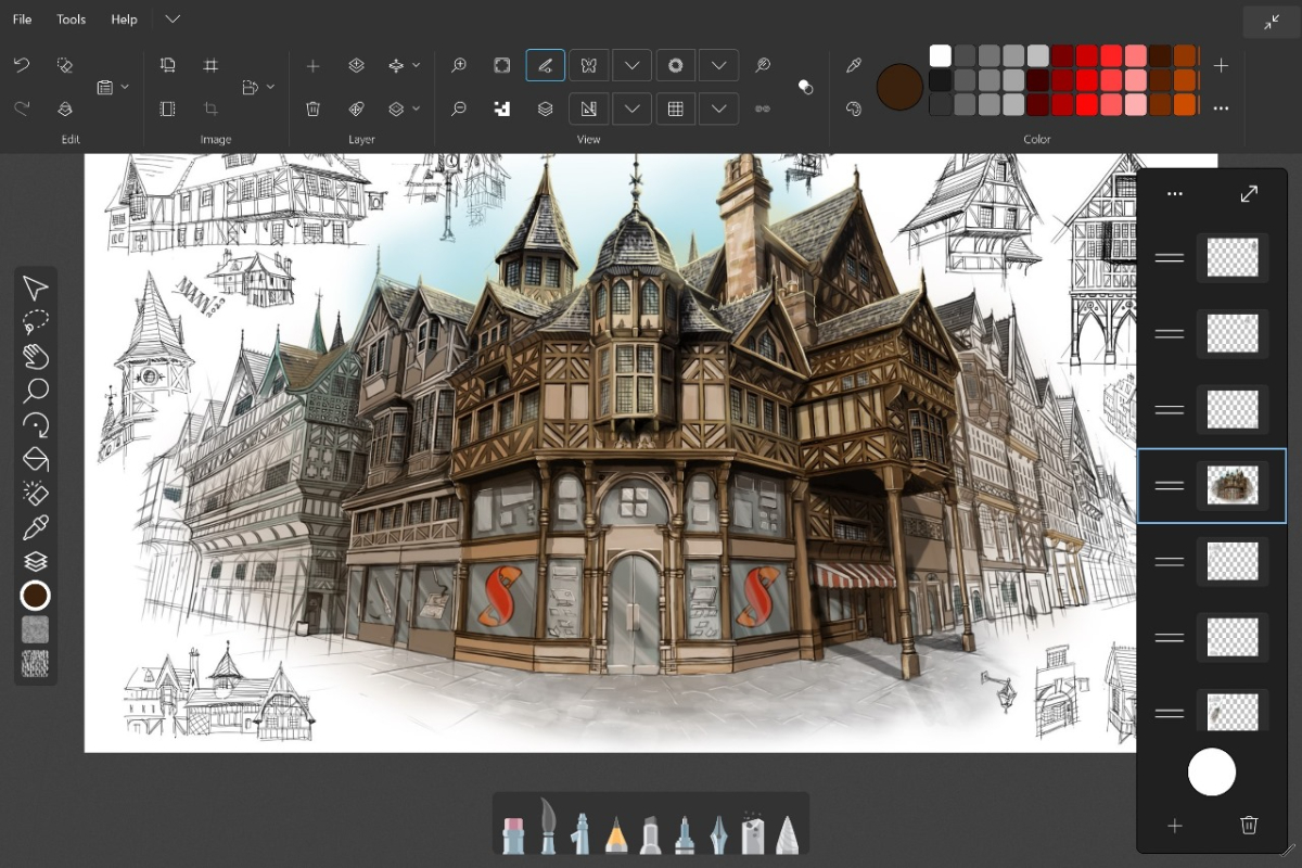 Anda Dapat Membangun dan mengelola banyak layer seperti di Photoshop sangat Krusial Demi mengatur sketsa, Rona, Pengaruh, dan detail.