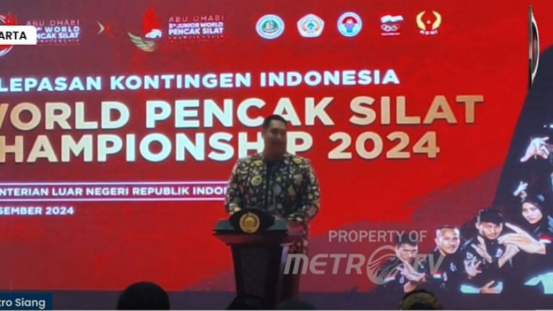 Menteri Luar Negeri sekaligus Wakil Ketua Standar Pengurus Besar Ikatan Pencak Silat Indonesia (PB IPSI), Sugiono Formal melepas atlet yang akan bertanding di kejuaraan dunia pencak silat di Serbuk Dhabi.
