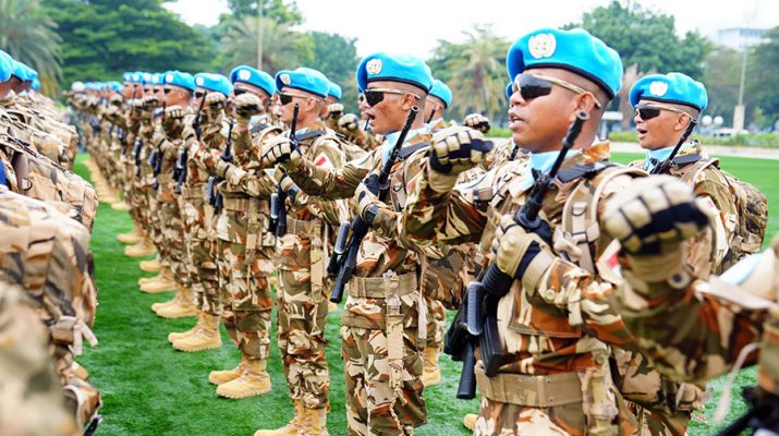 Prajurit TNI meneriakan yel yel seusai upacara pemberangkatan Satgas Kizi TNI Kontingen Garuda XX-V MONUSCO Kongo 2025, di Mabes TNI, Cilangkap, Jakarta, Kamis (19/6/2025). Sebanyak 175 prajurit TNI yang berangkat mengemban misi PBB ke Kongo berasal dari Denzipur 10/KYD Kodam XVII/Cenderawasih. Penugasan ini bukan sekadar tugas luar negeri, melainkan bentuk Konkret kontribusi TNI dalam menjaga perdamaian dan stabilitas dunia. PUSPEN TNI/gus