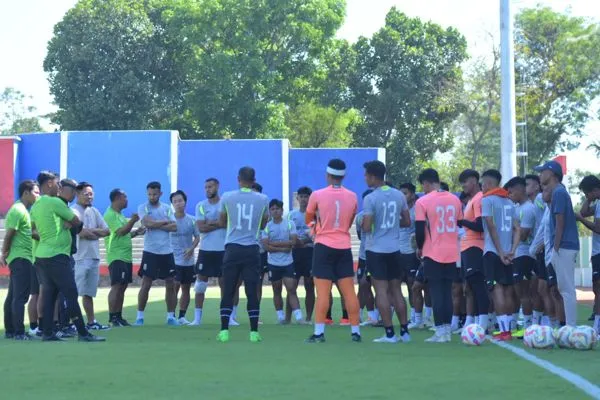 Para pemain Nusantara United dalam latihan sebelum laga melawan Persiku Kudus di Stadion Kebo Giro, Boyolali, Jumat (6/9/2024) (IST/Nusantara United)