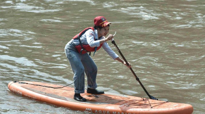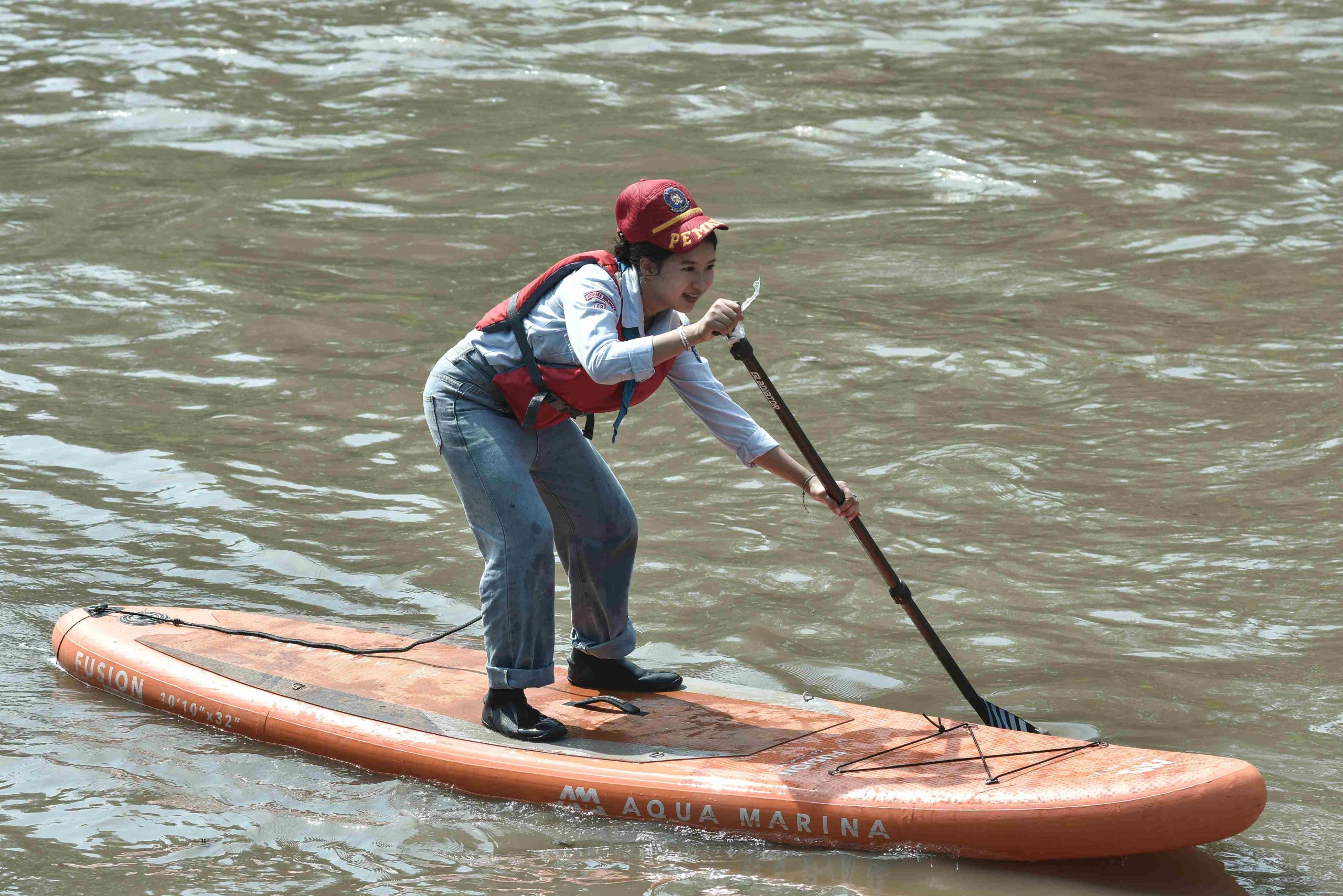 Siswa Pecinta Alam (Sispala) se-DKI Jakarta berlatih menggunakan stand up paddle board atau kayak pada Festival Dayung Sispala Jakarta 2025 di Aliran Kanal Banjir Timur (KBT) Malaka Sari, Jakarta Timur, Sabtu (13/9/2025). Kegiatan yang diadakan selama dua hari dari 13-14 September 2025 mengusung tema satu langkah, raih prestasi, stop tawuran tersebut sekaligus memberian edukasi kepada pelajar tentang olahraga air. ANTARA FOTO/Fakhri Hermansyah/Ppj
