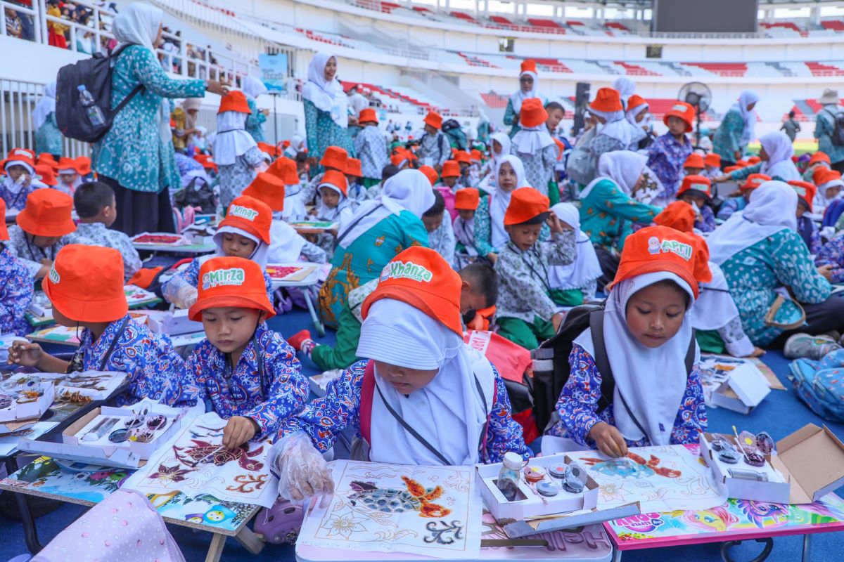 Kegiatan bertajuk “Ayo Membatik Berbarengan Bunda PAUD Jateng” ini dipusatkan di GOR Jatidiri Semarang dan diikuti 3.000 anak secara langsung, serta 24 ribu anak melalui daring dari 32 titik di 29 kabupaten/kota Jateng.