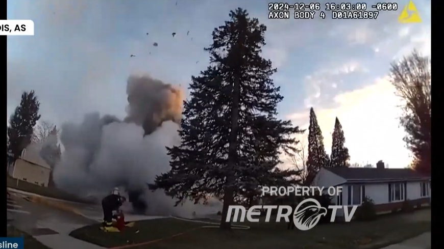 Sebuah truk sampah yang terbakar meledak di Illinois, Amerika Perkumpulan. Kejadian ini menyebabkan puing-puing berterbangan ke udara dan melukai tiga petugas tanggap darurat.
