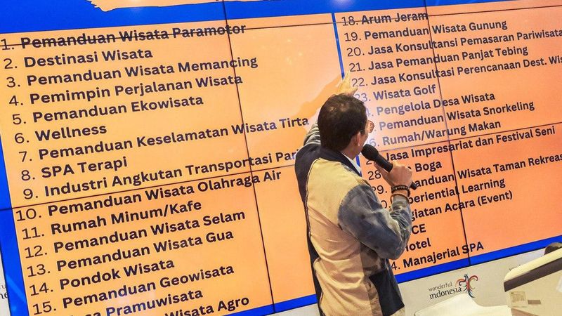Menteri Pariwisata dan Ekonomi Kreatif/Kepala Badan Pariwisata dan Ekonomi Kreatif (Menparekraf/Kabaparekraf) Sandiaga Salahuddin Uno dalam “The Weekly Brief With Sandi Uno” yang berlangsung secara hybrid, Senin (26/8/2024), mengatakan penyusunan 34 rancangan standar kompetensi sepanjang tahun 2022-2023 merupakan salah satu upaya percepatan penyiapan sumber daya manusia (SDM) pariwisata yang kompeten. Sebanyai 34 rancangan tersebut kemudian juga telah ditetapkan secara resmi menjadi dokumen SKKNI oleh Kementerian Ketenagakerjaan.