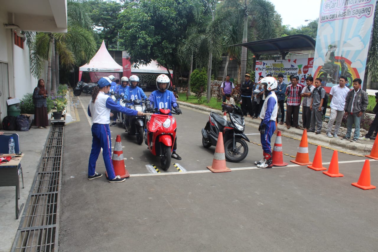 60 Peserta kompetisi berkendara Terjamin dengan tema “The 2nd Safety Riding Competition for Vocational School” ini berasal dari 55 SMK binaan Wahana Honda di Jakarta dan Tangerang. Dimulai sejak pagi, peserta yang hadir wajib mendaftar ulang Buat mengikuti kontes ini. Peserta juga wajib mengikuti tiga sesi yang disiapkan Safety Riding Promotion (SRP) Main Dealer sepeda motor Honda Jakarta Tangerang, PT. Wahana Makmur Sejati (WMS) Yakni tes teori, slalom course skill dan low speed balance.