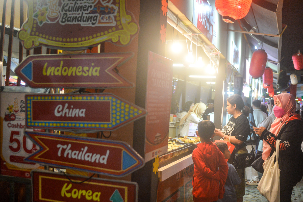 Penduduk berada di salah satu stan pada Festival Hidangan Bandung yang digelar di Summarecon Bandung, Jawa Barat(ANTARA FOTO/Raisan Al Farisi)