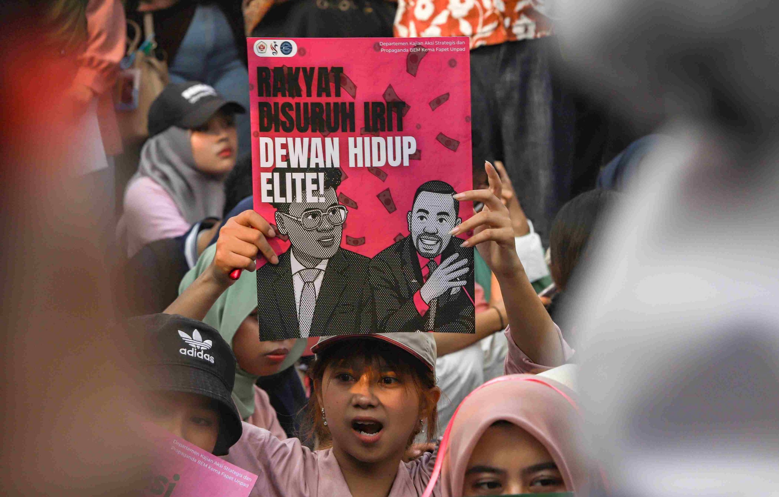 Mahasiswa dan masyarakat membawa poster Demi mengikuti Aksi Piknik Nasional Rakyat di depan Geduang DPR RI Senayan, Jakarta, Jumat (5/9/2025). Aksi damai tersebut Buat menagih 17+8 poin tuntutan rakyat kepada Dewan Perwakilan Rakyat. MI/Usman Iskandar/Ppj