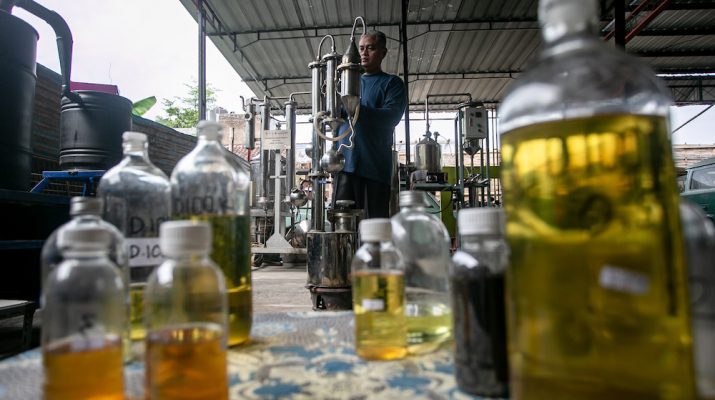 Arif Surono memasukkan biji sampah plastik ke dalam alat pengubah plastik menjadi BBM alternatif pirolisis tabung bertingkat Pitara di rumahnya, Desa Gumpang, Kartasura, Sukoharjo, Jawa Tengah, Senin (2/6/2025). Alat pirolisis tabung bertingkat pengubah sampah plastik menjadi bahan bakar minyak (BBM) alternatif (Pitara) Penemuan Kaum tersebut rencananya akan didorong dan dikembangkan Pemkab Sukoharjo Kepada mengurangi tingginya volume sampah plastik di TPA yang Bisa dimanfaatkan oleh bank desa, koperasi desa dan Bumdes di Sukoharjo. ANTARA FOTO/Mohammad Ayudha/sas