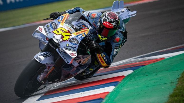 Memasuki lap keenam, giliran Fermin Aldeguer yang kehilangan keseimbangan dan terjatuh di lintasan.