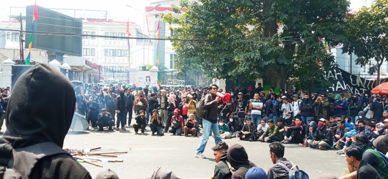 “Demonstrasi masyarakat sipil di Bandung, sejatinya bagian dari puncak kemuakan atas rentetan praktik penghancuran demokrasi,” ujar Ketua BEM Universitas Islam Bandung, Ramdan.