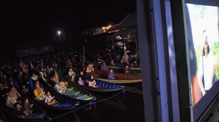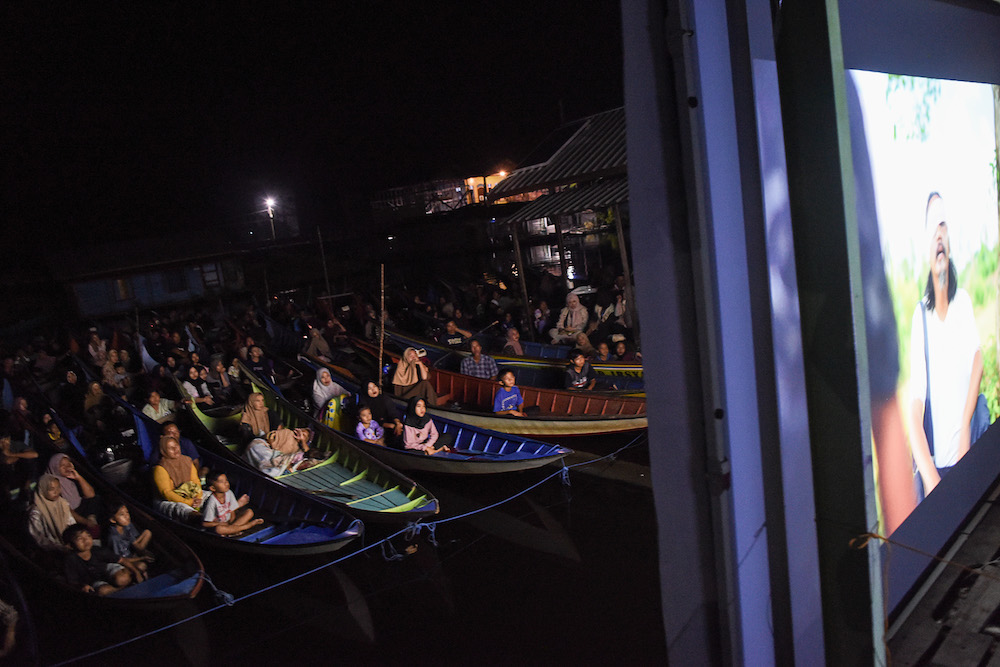 Sejumlah Kaum menikmati pengalaman Aneh menonton bioskop terapung dari atas Bahtera di Desa Muara Enggelam, Kecamatan Muara Wis,Kutai Kartanegara, Kalimantan Timur, Selasa (22/7/2025).Program bioskop terapung ini merupakan inisiatif komunitas Layar Mahakama dan digelar di tiga Waduk di Kalimantan Timur: Waduk Semayang (Desa Sangkuliman), Waduk Melintang (Desa Muara Enggelam), dan Waduk Jempang (Desa Tanjung Jone). Kegiatan ini dihadirkan sebagai alternatif hiburan bagi masyarakat pesisir yang selama ini Enggak Mempunyai akses ke bioskop konvensional. ANTARA FOTO/M Risyal Hidayat/sas