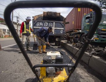 Pengunjung menyaksikan video mapping bertema kekayaan budaya nusantara Begitu pembukaan Livin Alun Alun Nusantara di Lippo Mall Nusantara, Jakarta, Jumat (14/02/2025). Livin Alun Alun Nusantara meruppakan area foodcourt yang menghadirkan lebih dari 200 pilihan menu khas nusantara serta 200 lebih UMKM Indonesia. MI/Usman Iskandar