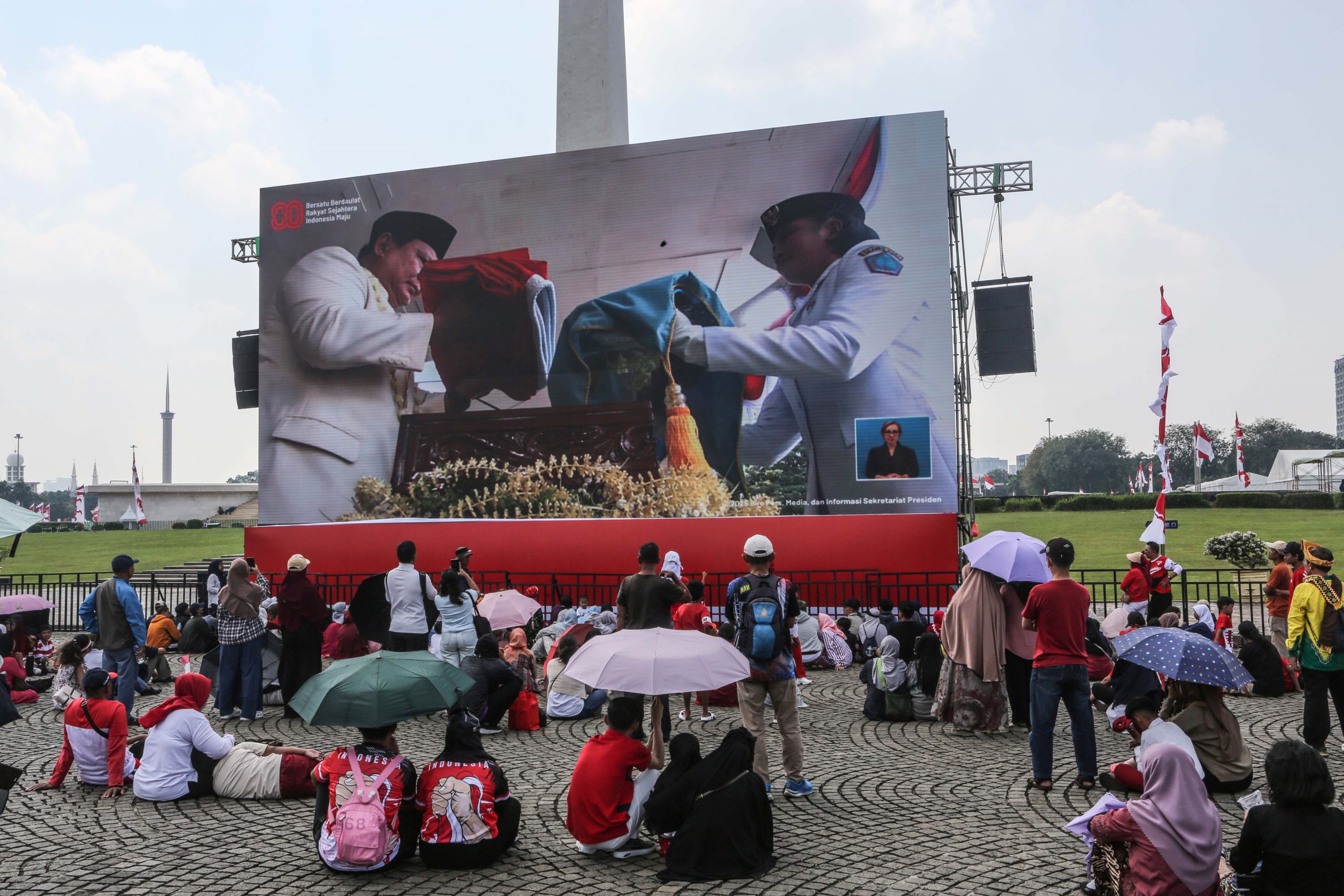 Anggota mengikuti Upacara Peringatan Detik-Detik Proklamasi Kemerdekaan ke-80 Republik Indonesia di kawasan Monas, Jakarta, Minggu (17/8/2025). Pemerintah menggelar sejumlah acara pada HUT ke-80 Republik Indonesia mulai upacara HUT ke-80 RI di Istana Negara, Pesta Rakyat di Monas, hingga malam perayaan HUT ke-80 RI. MI/RAMDANI