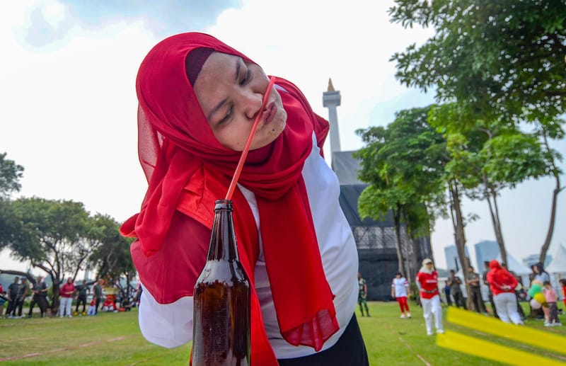Antusiasme peserta saat mengikuti lomba Agustusan di Silang Monas, Jakarta, Kamis (15/8/2024). Kegiatan yang diikuti keluaga besar Kodim 0501/JP dalam rangka menyemarakkan HUT ke-79 Kemerdekaan RI itu melombakan memasukkan benang ke dalam jarum, lomba menangkap belut, memindahkan tepung, dan lomba menjepit sedotan. MI/Usman Iskandar/sas![]()