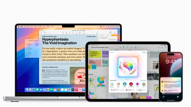 Fiturnya meliputi alat tulis, ringkasan notifikasi untuk SMS dan Mail, pencarian bahasa alami dan pembuatan memori di Photos, transkripsi untuk panggilan dan rekaman suara di notes, serta fitur ringkasan dan balasan cerdas di Mail.