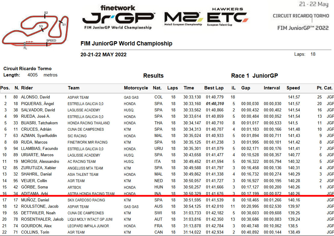 Arbi Aditama 0,072 detik dari Point pertamanya di Race 1 @JuniorGP Valencia 2022