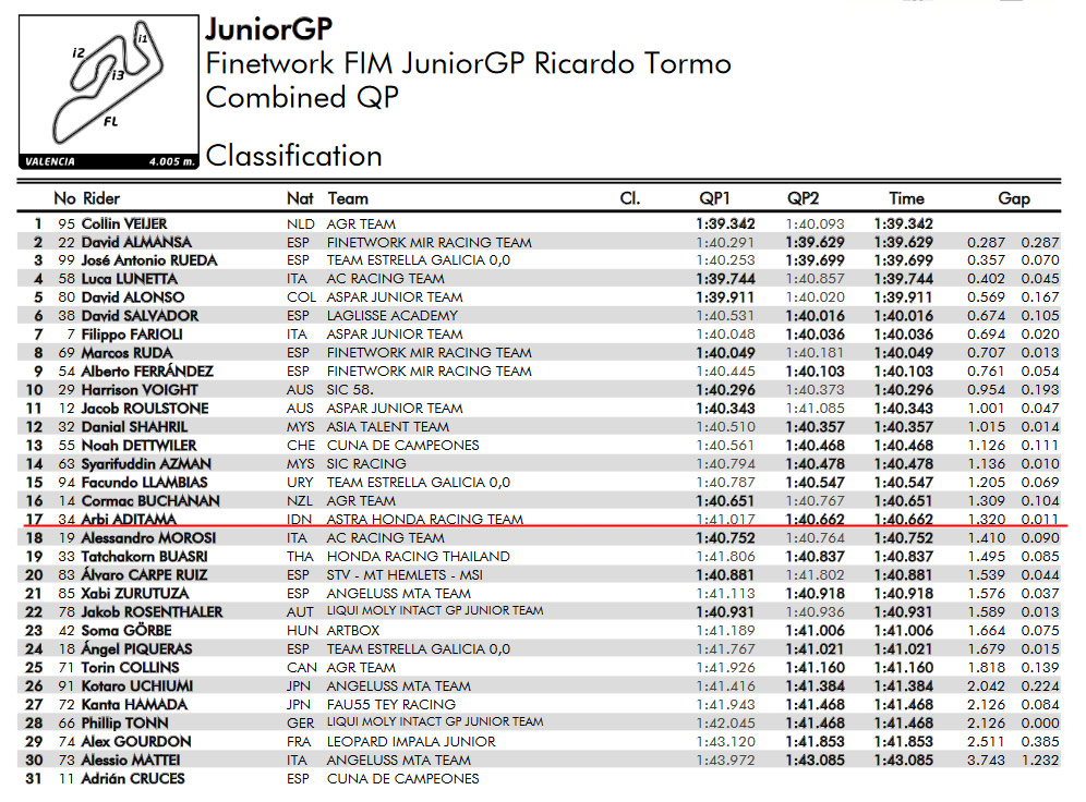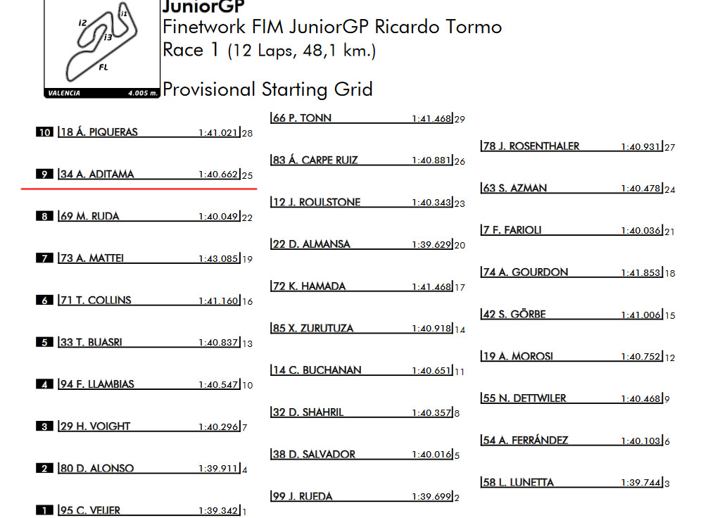 Pada dasarnya di dua kali sesi Kualifikasi kemarin sabtu, Arbi Aditama memenuhi syarat Demi Dapat mempeorleh starting grid ke-17 tetapi ia memperoleh Hukuman penalti start dari belakang grid – lebih tepatnya Grid ke 29 atau Row ke 9 karena kedapatan berkendara Pelan di QP1.