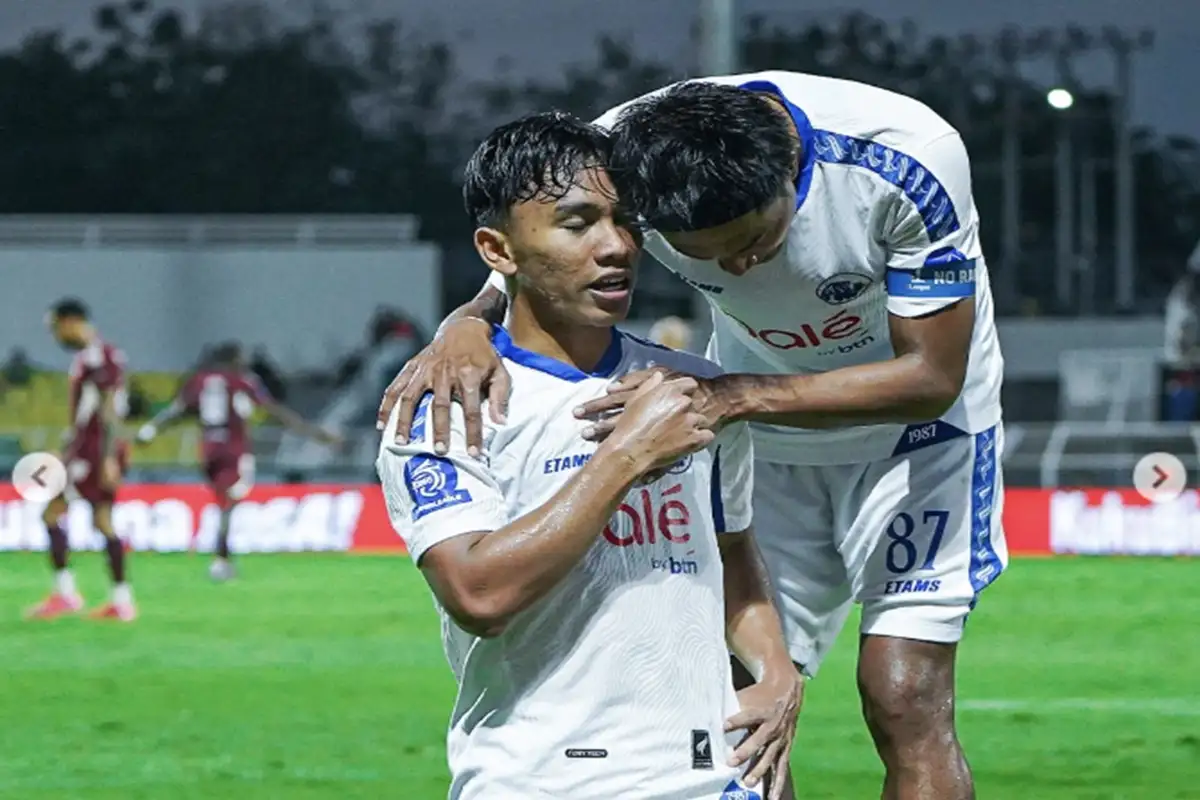 Liputanindo.id – Gelandang serang Arema FC, Arkhan Fikir (kiri), melakukan selebrasi seusai menjebol gawang PSM Makassar di Stadion B.J. Habibie, Parepare, Minggu (19/10/2025). PSM menang dengan skor 2-1. (Instagram/aremafcofficial)
