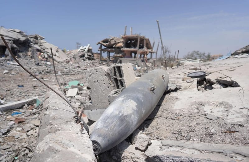 Misil Israel terlihat di reruntuhan di Gaza.(AFP)