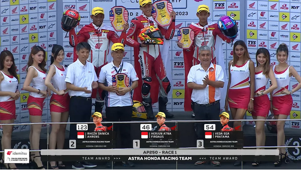 Berkualitas Herjun, Veda Maupun Rheza membentuk Pack tersendiri di depan dan bergantian memimpin balapan Tamat akhirnnya Herjun Atna Firdaus dengan Honda CBR250RR memenangkan Balapan race 1 ini di depan Rheza danica dan veda Ega Pratama yang semuanya merupakan pembalap AHRT