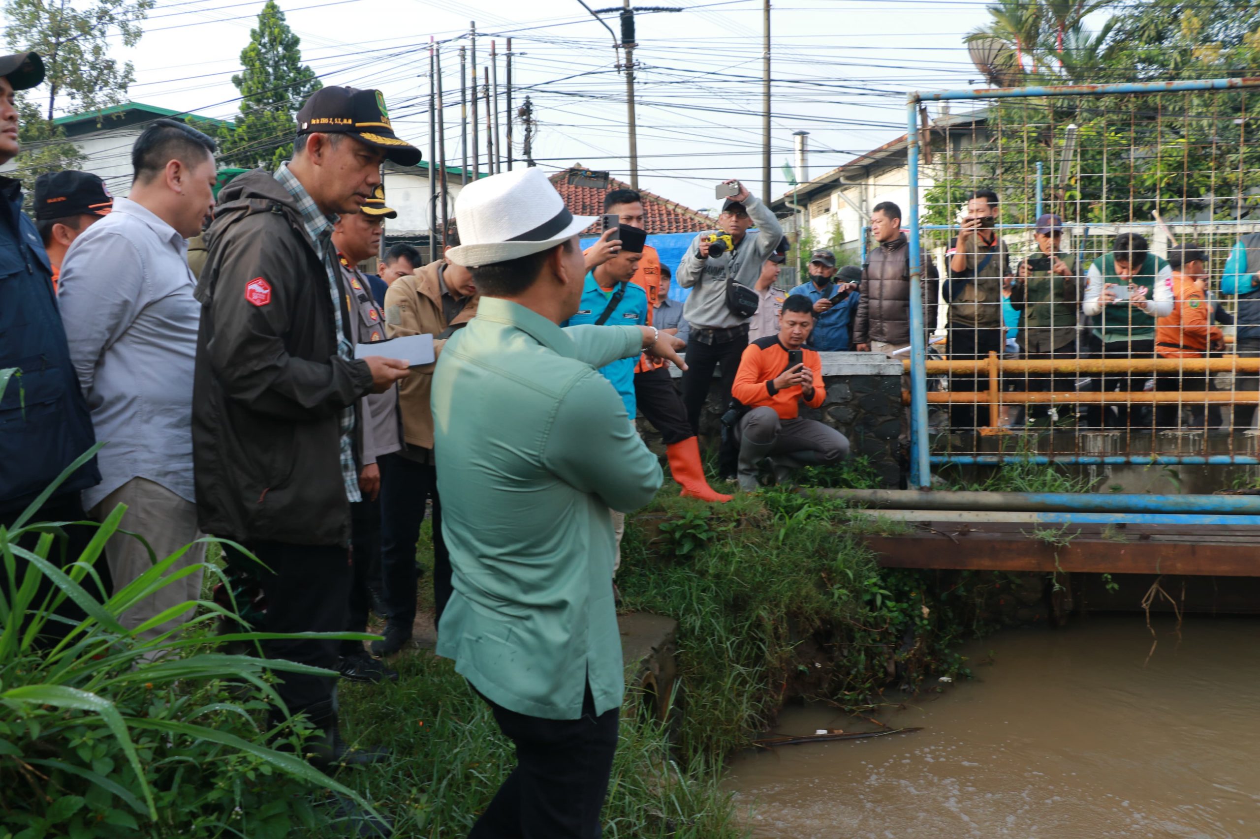meninjau Letak bencana banjir di kawasan Jalan Raya Laswi, Kampung Cidawolong, Desa Biru, Kecamatan Majalaya, Selasa (4/3).