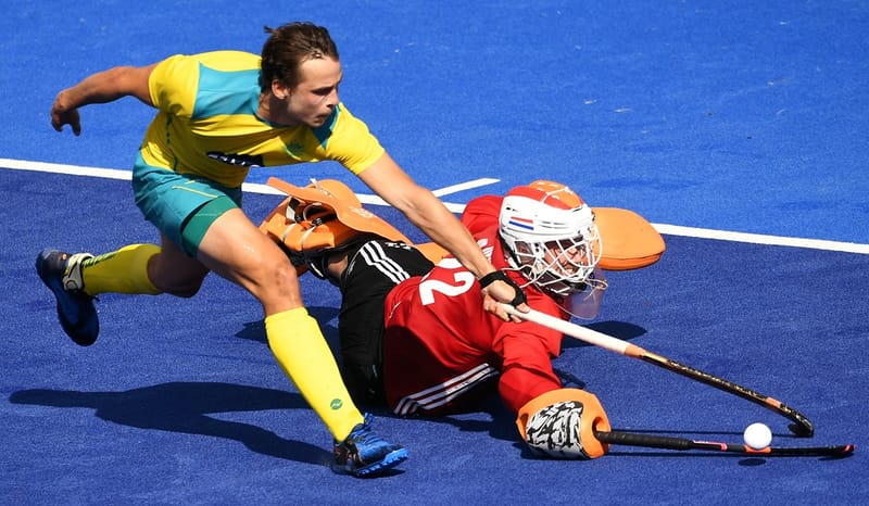 Atlet hoki Australia Sam Craig (kiri)(AFP/William WEST)