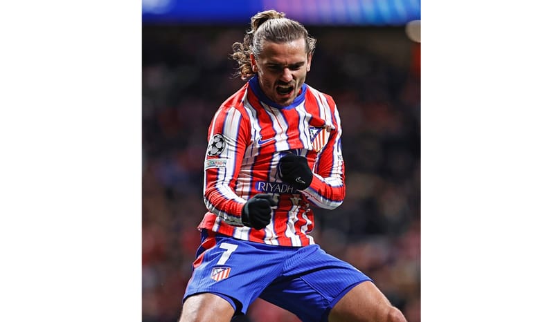 ANTOINE Griezmann mencetak dua gol kala Atletico Madrid menang 3-1 atas Slovan Bratislava di laga Aliansi Champions, Kamis (12/12) Awal hari WIB.