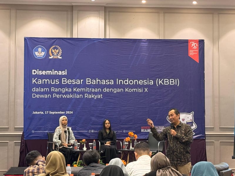 BADAN Pengembangan dan Pembinaan Bahasa (Badan Bahasa), Kementerian Pendidikan, Kebudayaan, Riset, dan Teknologi (Kemendikbud-Ristek), menggelar acara diseminasi Andas Besar Bahasa Indonesia (KBBI) bersama Komisi X DPR RI kepada para mahasiswa di daerah Jakarta Timur.