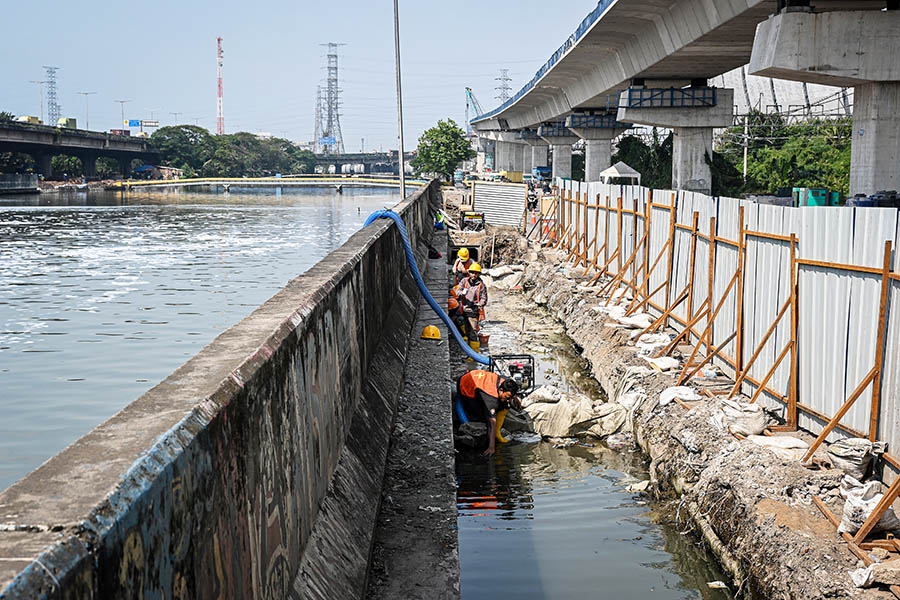 Pekerja menyelesaikan pembangunan penguatan tanggul dan gorong-gorong pengaman pantai di Jalan Ancol Timur, Pademangan, Jakarta, Senin (8/9/2025). Kementerian Pekerjaan Standar membangun Pengaman Pantai Tahap 7 Paket 1 dengan Membikin tanggul sepanjang 100 meter dan penguatan gorong-gorong sepanjang 200 meter Buat mengatasi banjir rob dan Erosi di Daerah itu. ANTARA/Sulthony Hasanuddin/gus