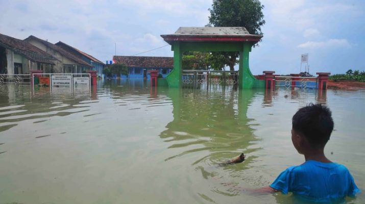 Anggota berjalan melintasi jalan yang tergenang banjir di Desa Setrokalangan, Kaliwungu, Sakral, Jawa Tengah, Jumat (24/1/2025). Menurut data BPBD Sakral per Jumat (24/1), banjir akibat intensitas hujan yang tinggi di Daerah hulu yang menyebabkan meluapnya air Sungai Wulan itu merendam 185 rumah di lima desa di Kecamatan Kaliwungu dan Jati dan sebanyak 1.091 KK/3.556 Jiwa terdampak serta 58 Jiwa mengungsi. ANTARA FOTO/Yusuf Nugroho/Per