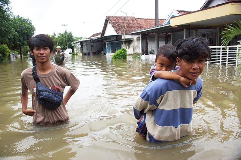 Kaum melintasi jalan yang terendam banjir di Dusun Beluk, Desa Jombok, Kecamatan Kesamben, Kabupaten Jombang, Jawa Timur, Senin (9/12/2024). Dari data BPBD Kabupaten Jombang, banjir akibat luapan sungai Afvour Watudakon itu merendam ratusan rumah dengan ketinggian bervariasi mulai 30 sentimeter hingga 60 sentimeter, selain itu sebanyak 600 jiwa terdampak serta 55 orang mengungsi ke tempat Kondusif. ANTARA/Syaiful Arif/gus