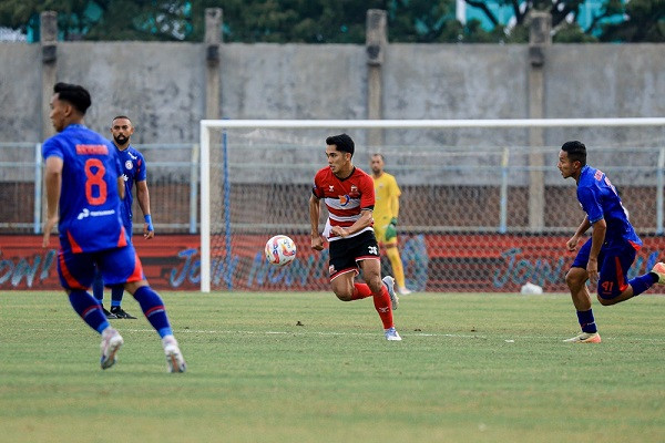 BANGKALAN – Madura United FC dipaksa mengakui keperkasaan Arema FC dengan skor 2-4 dalam lanjutan BRI Aliansi 1 2024/2025 di Stadion Gelora Bangkalan (SGB), Madura, Jawa Timur, Kamis sore (21/11/2024).