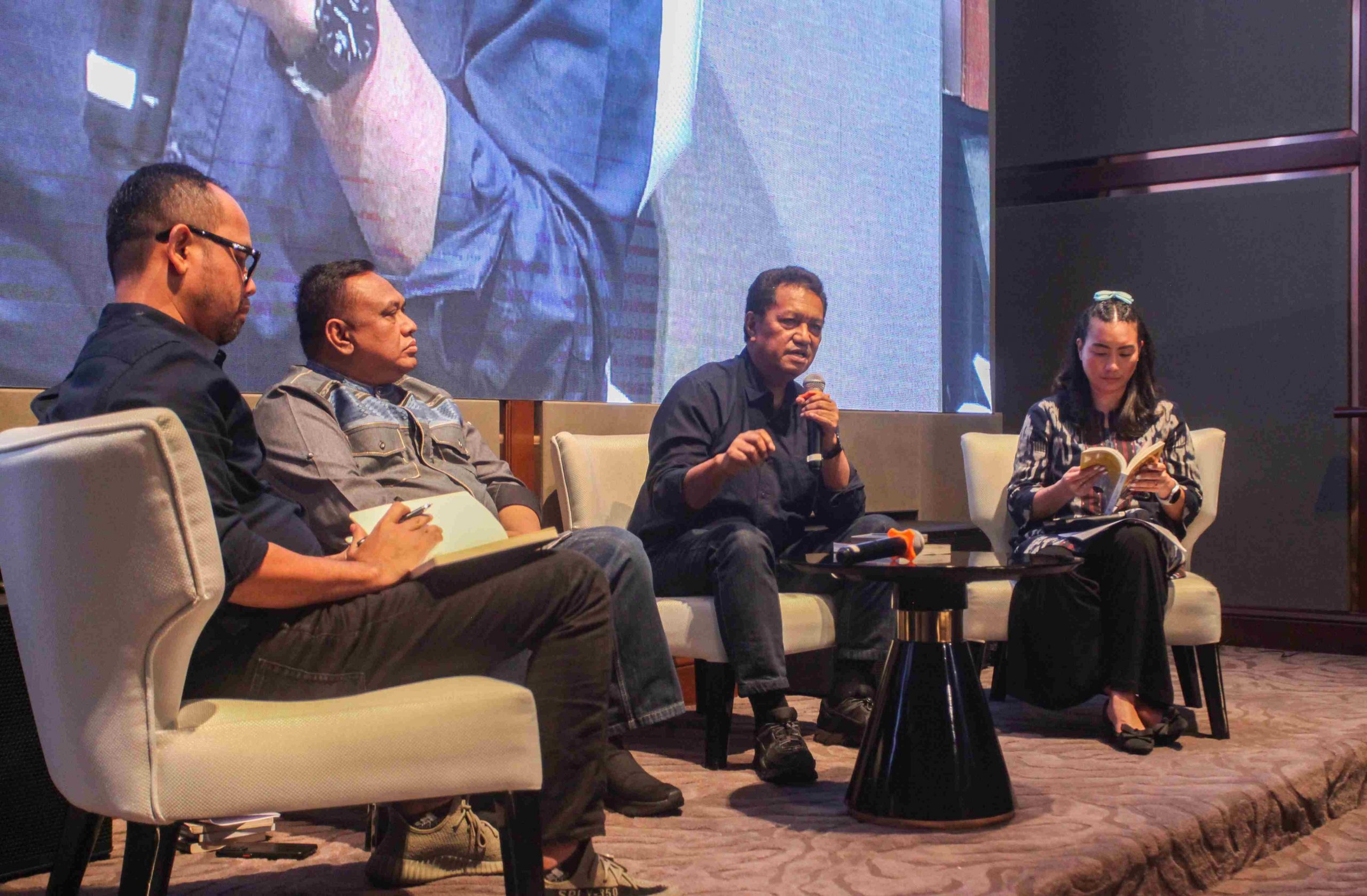 Narasumber Member DPR RI, Rahayu Saraswati Djojohadikusumo (kanan), Direktur Penting Media Indonesia, Gaudensius Suhardi (kedua kanan), penulis Naskah Moch Eksan (kedua kiri) dan moderator Jakfar Sidiq hadir dalam bedah Naskah berjudul Prabowo Subianto: Jenderal Penakluk Sejarah Presidensial di NasDem Tower, Jakarta, Jumat (07/3/2025). Obrolan itu membedah Naskah berisi perjalanan Prabowo Subianto dalam mencapai cita-cita politiknya. MI/Usman Iskandar/Ppj