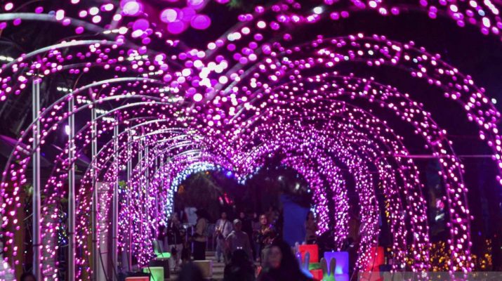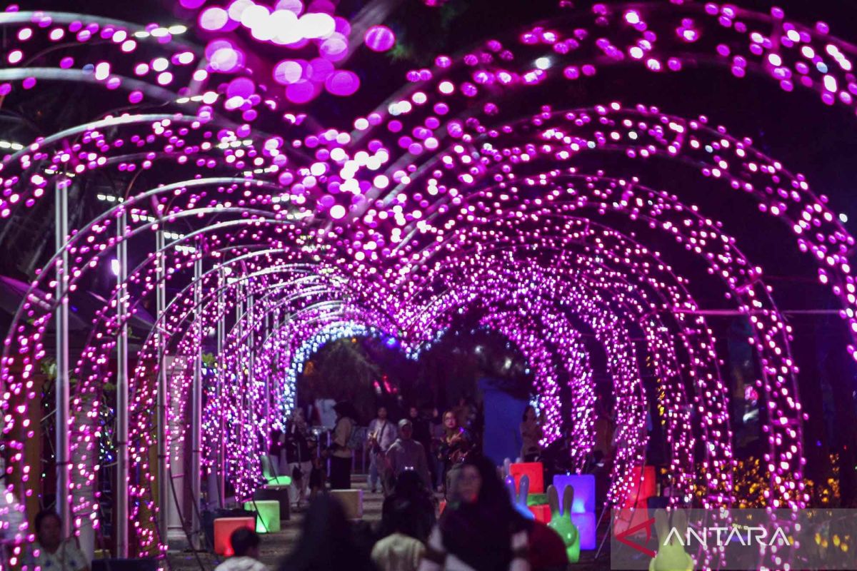 Wisatawan mengunjungi Batam Light Festival di Batam, Kepulauan Riau, Rabu (1/1/2025). Festival tersebut menampilkan Variasi bentuk lampion dan instalasi pencahayaan dengan menargetkan kunjungan 3.000 orang perhari yang berlangsung hingga 2 Februari 2025. ANTARA FOTO/Kukuh Prihatna/YU