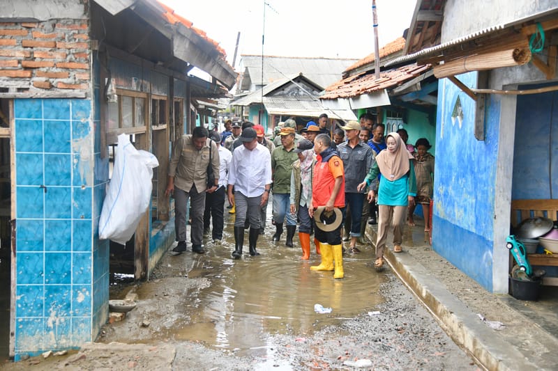PENJABAT Gubernur Jabar Bey Machmudin meninjau Posisi bencana banjir rob di Kecamatan Legon Kulon, Kabupaten Subang, Minggu (15/12) sore.
