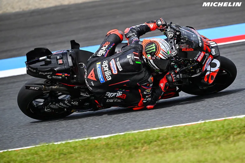 liputanindo.com – Temperatur Permukaan Aspal Trek Sirkuit Motegi di siang hari di awal dari 60 menit sesi Practice MotoGP Motegi 2025 Terdapat di Nomor 37° C dengan Kondisi langit berawan sebagian dan kelembaban 63%. Bencmark Laptime pertama hadir di menit ke 4 dimana Johann Zarco dengan Ban Medium – Soft memimpin timesheet dengan 1:44,769 diikuti Mir dan Aldeguer. Menit ke 6, Zarco mengupdate Laptime menjadi 1:44,429. Menit ke 7 Aldeguer memimpin dengan 1:44,423.