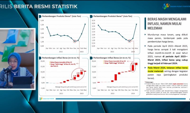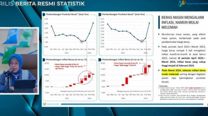Pada Maret 2024, tekanan inflasi beras mulai melemah seiring dengan mulainya panen raya, yang berarti terjadi peningkatan produksi beras di domestik.