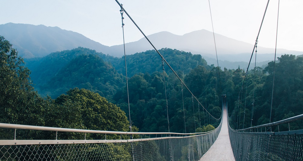 Ketegangan biasanya mulai muncul Begitu berada di tengah jembatan. Di sini, angin berhembus lebih kencang dan bikin jembatan sedikit berayun. ‘Tantangan dan sensasi uji adrenalin, Dapat dicobain!’
