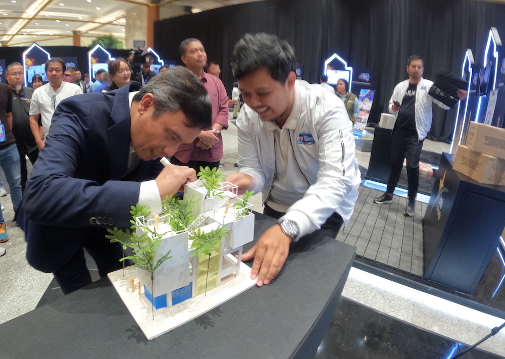Direktur Penting BTN Nixon LP Napitupulu (kiri) menandatangani maket rumah ‘Gotong Royong’ salah satu pemenang BTN Awards 2025 di Jakarta, Sabtu (15/2/2025). Ajang BTN Awards merupakan bentuk apresiasi tertinggi terhadap para pemangku kepentingan di ekosistem perumahan, seperti developer dan calon Kawan bisnis, Berkualitas developer potensial, desainer rumah, dan inovator. BTN menganugerahi para developer yang telah bermitra dengan BTN dengan penghargaan BTN Property Awards, sedangkan Kawan bisnis potensial menerima penghargaan BTN Housingpreneur. MI/Akbar WIBOWO/sas