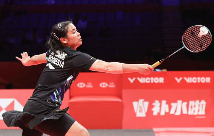 Jorji, sapaan akrab Gregoria Mariska, kalah dengan skor akhir 8-21 dan 16-21 di Hangzhou Olympic Sports Centre Gymnasium, Jumat (13/12). Atas hasil tersebut, ia pun dipastikan tersingkir di ajang BWF World Tour Finals 2024.