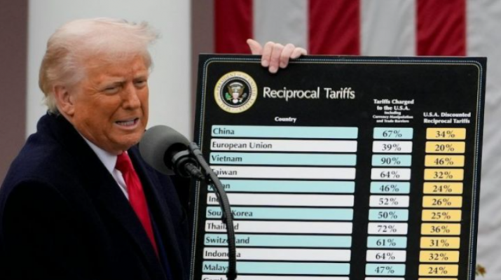 Donald Trump menunjukan daftar negara-negara dengan besar tarif yang dikenakan. (EPA-EFE/KENT NISHIMURA / POOL) Washington: Presiden AS Donald Trump membantah laporan beberapa produk elektronik