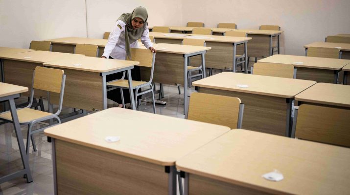 Sejumlah guru menata meja kursi serta merapikan Bilik asrama di Sekolah Rakyat yang berlokasi di kompleks Balai Besar Pelatihan Vokasi dan Produktivitas (BBPVP) Semarang,