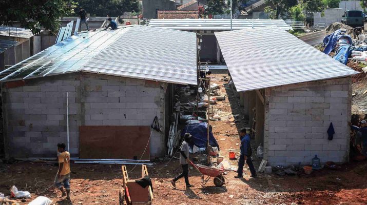 Pekerja menyelesaikan pembagunan kios sentra Satwa di Lenteng Akbar, Jakarta, Rabu (24/9/2025). Proyek yang berdiri di atas lahan seluas 7.000 meter persegi itu disiapkan