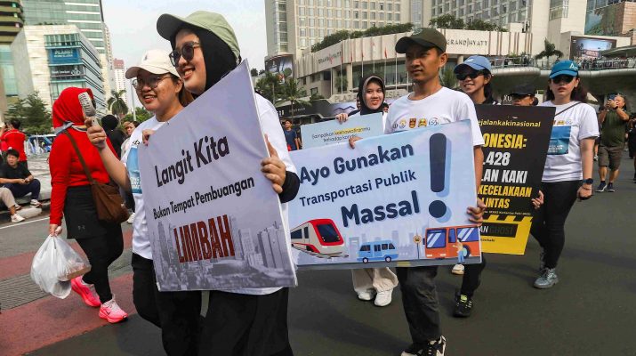 Komunitas dari Aliansi Udara Kudus Indonesia melakukan kampanye mengajak masyarakat Demi bergerak Serempak demi langit Kudus dan biru di arena car free day (CFD)