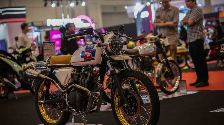 Berbagai motor modifikasi dipamerkan pada Pameran Indonesia Motorcycle Show (IMOS) 2025 di Indonesia Convention Exhibition (ICE) BSD, Serpong, Kabupaten Tangerang, Banten, Rabu (24/9/2025). Mengusung