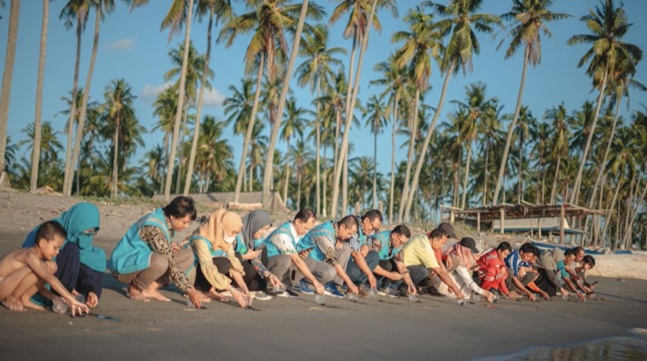 Aktivitas pelepasan penyu di Pantai Lowita. Foto: Dok istimewa Jakarta: PLN Indonesia Power (PLN IP) melalui Unit Bisnis Pembangkitan (UBP) Barru meluncurkan program inovatif