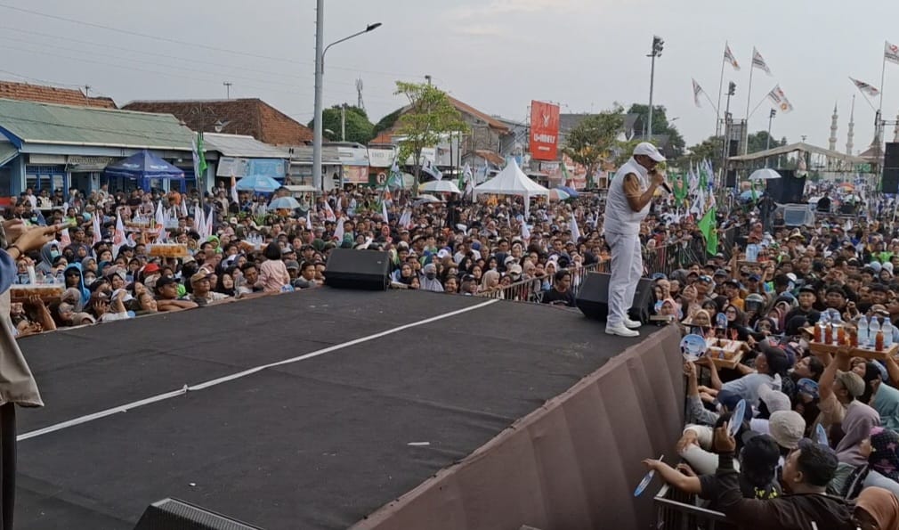 CALON wali kota (cawalkot) Tegal, Jawa Tengah, nomor urut 2, Dedy Yon Supriyono, Kelenger Demi menghadiri kampanye akbar Pilkada 2024, di Jalan Pancasila, Kota Tegal, Jawa Tengah, pada Jumat (22/11) sore.